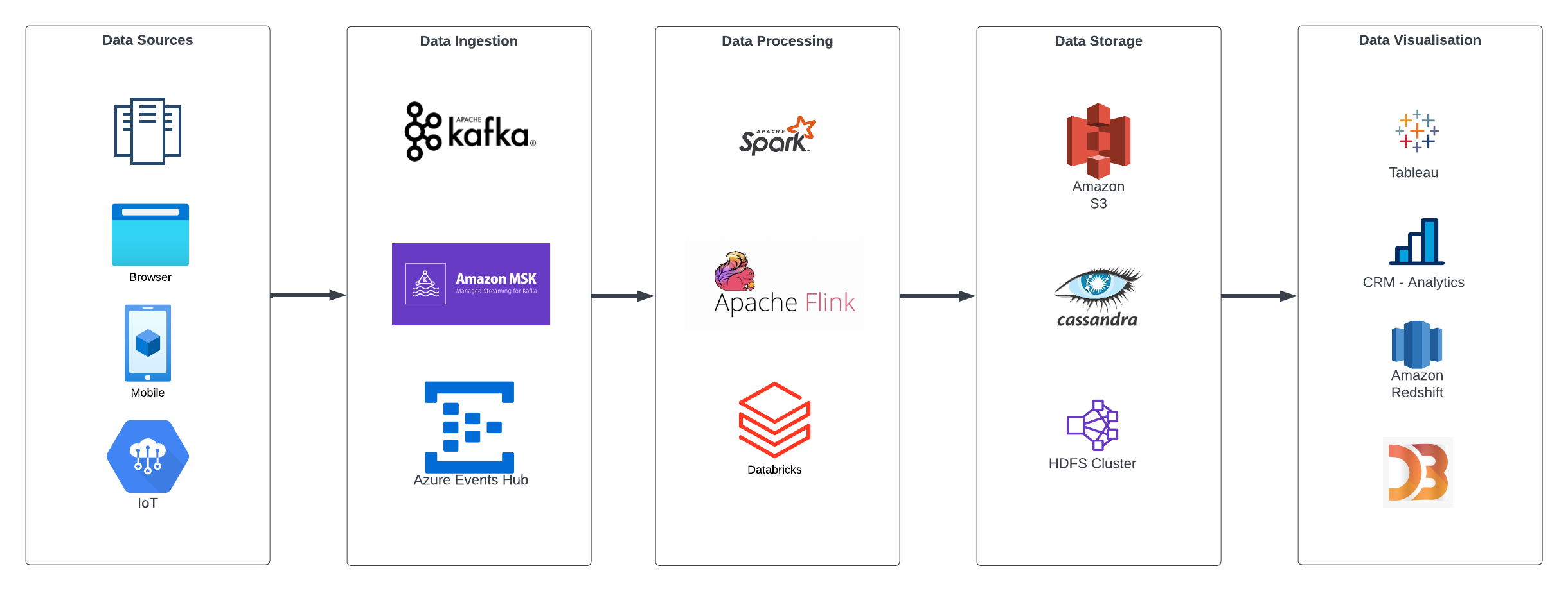 Data Storage: The processed data is then stored in a data store, such as a database, data warehouse, or data lake, for future analysis and reporting.
